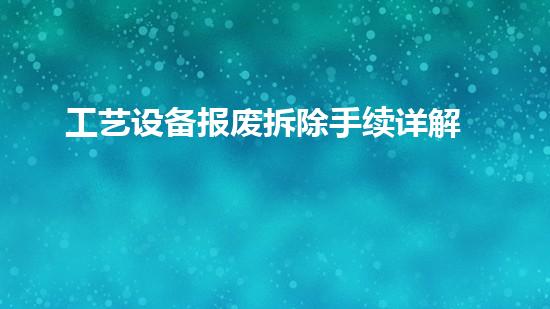 摘要工艺设备的报废拆除手续是资产处置的重要环节,也是企业进行更新换代的必要操作。本文将从工艺设备报废拆除的背景和意义入手,详细介绍该手续的具体步骤和操作要点,并对工艺设备拆除的相关问题进行了深入分析。...