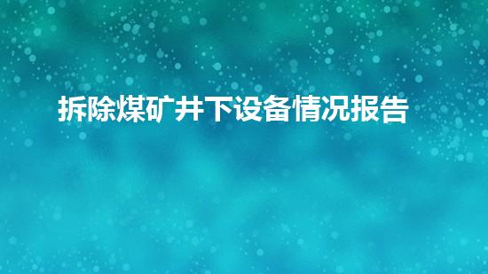 摘要:本文主要涉及煤矿井下设备拆除的情况报告,并且着重介绍了煤矿井下设备的拆除原因、拆除方案、拆除过程中需要注意的事项以及拆除后的处理情况。文章目的是引出读者的兴趣,并让读者深入了解煤矿井下设备拆除的...