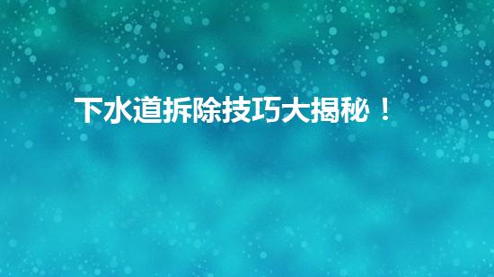 下水道拆除技巧大揭秘!