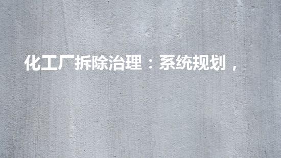 摘要:化工厂作为某些行业的重要生产基地,不可避免地面临拆除治理的问题。本文将从系统规划、全面管理两个方面进行深入探讨,重点讨论水刀不动火拆除技术应用、油罐拆除、设备回收、危废处理、土壤修复等方面。正文...