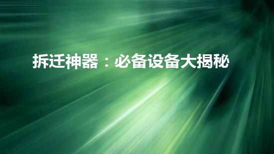 摘要:随着城市化进程的加快,在城市中的拆迁工作也越来越频繁,这对拆迁工人和工作效率提出了更高的要求。文章“拆迁神器:必备设备大揭秘”详细介绍了拆迁领域中必备的一些设备,这些设备包括抓斗机、爆破机、水刀...