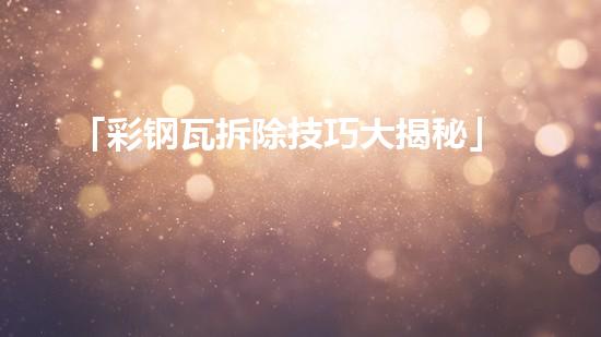 摘要:彩钢瓦是一种常用的建筑材料,拆除它们时需要谨慎处理,以避免伤害人员和损坏周围构造。本文将以彩钢瓦拆除技巧为中心,提供有关拆除彩钢瓦的专业指导,包括技巧、风险和安全措施等方面,帮助读者更好处理拆除...