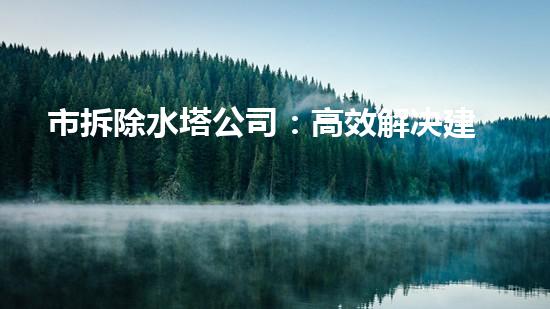 摘要:市拆除水塔公司高效解决建筑遗留难题,是一个专业的拆除行业技术团队,为建筑领域提供高品质、高效率、低成本的拆除服务。本文将从一位化工技术专家的角度,从四个方面对市拆除水塔公司的高效率服务做详细的探...