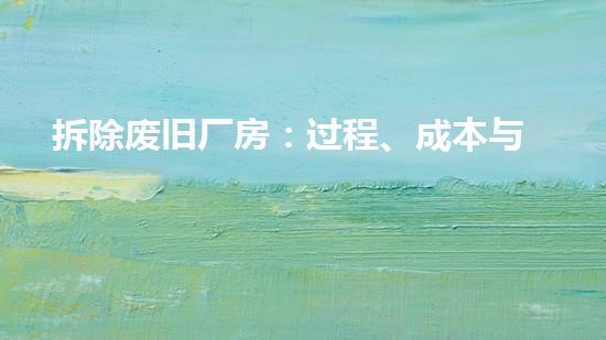 摘要:拆除废旧厂房是一项复杂的任务,需要专业的技术和危机应对能力。本文以化工厂拆除为例,详细阐述了拆除废旧厂房的过程、成本和应对危机的能力。介绍了巴洛仕集团化工厂拆除的情况,包括清洗置换、设备回收、废...