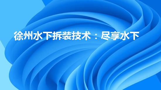 徐州水下拆装技术:尽享水下视角,安全快捷拆除安装