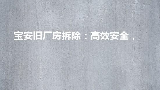 宝安旧厂房拆除:高效安全,顺利建设未来