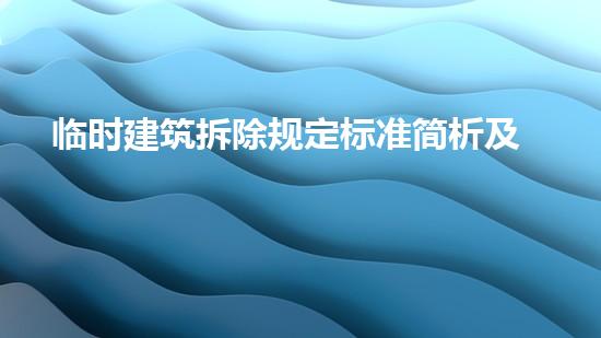摘要:随着城市化的发展,临时建筑的使用频率不断提高,而其拆除也成为了一个重要的问题。本文介绍了临时建筑拆除规定标准简析及应用指南,从专业角度深入阐述了拆除行业的专家对于这一问题的看法和建议。本文从拆除...