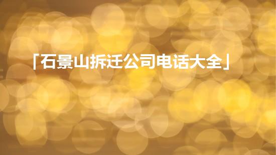 摘要:本文介绍了“石景山拆迁公司电话大全”,引出读者的兴趣并提供相关背景信息。正文:一、石景山拆迁公司电话大全的重要性在进行拆迁工作时,找到一家合适的拆迁公司是非常重要的。但在石景山地区由于拆迁公司繁...