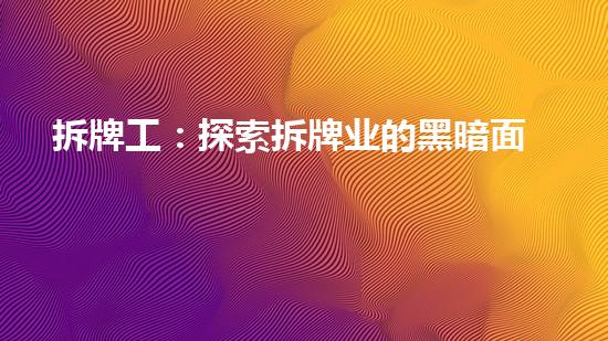 拆牌工:探索拆牌业的黑暗面摘要:拆牌工作作为一项必要的拆除工作,在工业、建筑和交通领域得到广泛应用。然而,在实践过程中,拆牌工作也暴露出一些问题,这些问题涉及到施工安全、危废管理、环保问题等。本文旨在...