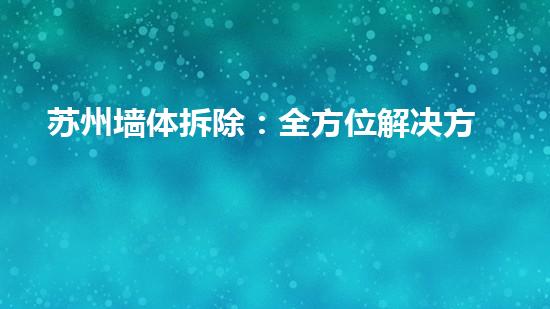 苏州墙体拆除:全方位解决方案