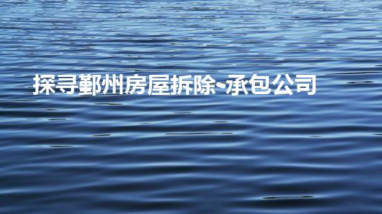 摘要本文旨在探寻鄞州地区房屋拆除-承包公司名册,通过深入分析该领域的市场现状和技术趋势,为读者提供合理的建议和未来研究方向。本文包括摘要、正文和结论三部分。正文部分包括四个方面,分别是市场现状、技术趋...