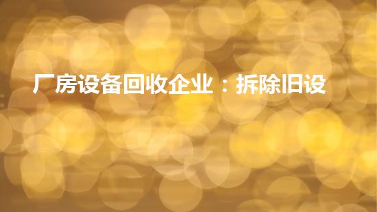 摘要:厂房设备回收企业的出现,为企业带来了全新的发展机遇,这些企业专门负责拆除旧设备,并创造新的价值,为企业提供了诸如危废处理、设备回收、土壤修复等方面的一站式解决方案。本文将对这些企业进行深入的研究...
