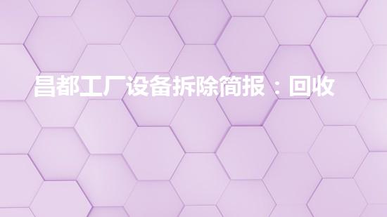摘要:昌都工厂设备拆除简报:回收利用动态介绍了在设备拆除过程中如何实现回收利用。文章分析了当前设备拆除产生的废弃物对环境和经济的负面影响,并探讨了在拆除过程中如何实现废物减量和回收利用的可行性和重要性...