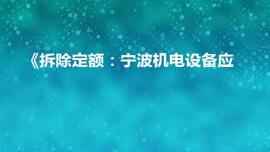 《拆除定额:宁波机电设备应用与优化》