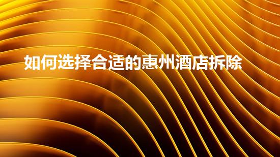 如何选择合适的惠州酒店拆除公司电话号码,值得关注