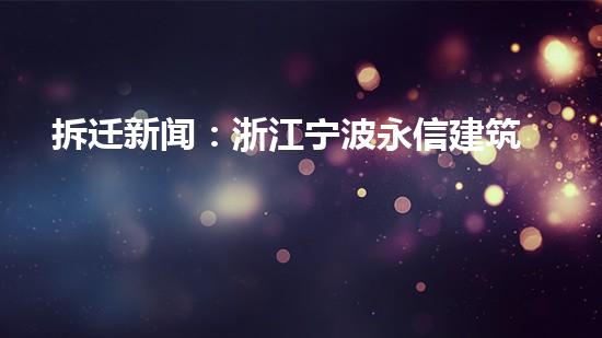 拆迁新闻:浙江宁波永信建筑拆除有限公司拆迁进展情况汇总