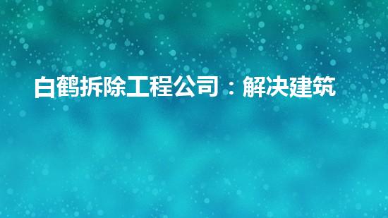 摘要:白鹤拆除工程公司是一家专注于拆除领域的公司,致力于解决建筑拆除难题。该公司在拆除工程中采用多种环保、高效且经济的拆除方式,包括水刀切割拆除技术、废液处理技术、危废处理技术等。本文将从多个角度对白...