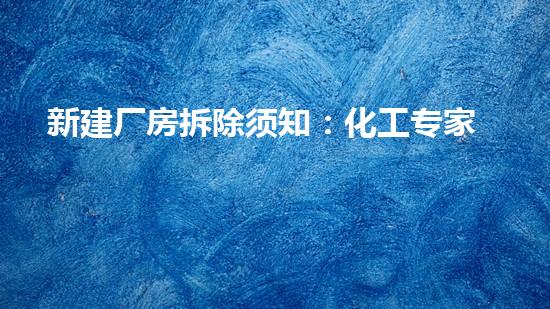 新建厂房拆除须知:化工专家教您如何规划安全拆除程序