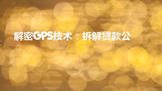 解密GPS技术:拆解贷款公司黑幕