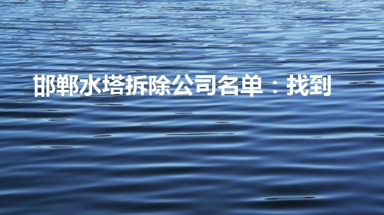 邯郸水塔拆除公司名单:找到可靠的合作伙伴