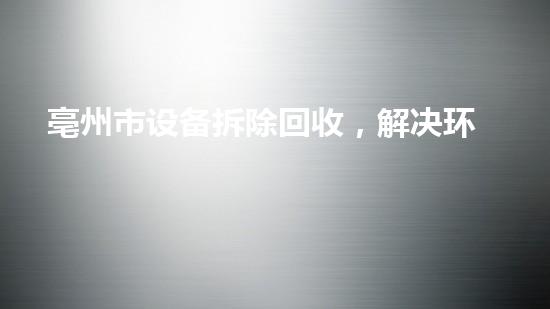 摘要:随着经济的快速发展,环境污染和垃圾问题越来越严重,为解决亳州市环境卫生难题,设备拆除回收成为一种可行的解决方案。本文将从多个方面对亳州市设备拆除回收,解决环境卫生难题进行深入的详细介绍和分析,力...