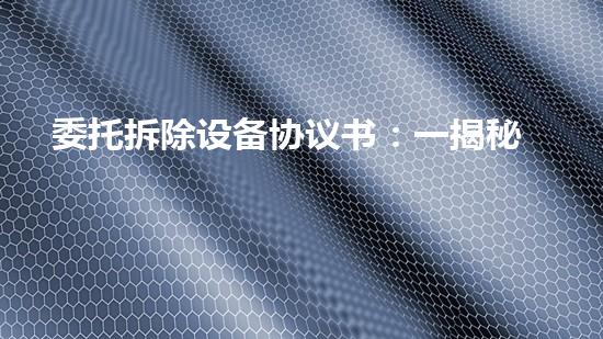 摘要:本文将围绕委托拆除设备协议书展开,从法律层面、技术层面、商业层面以及环保层面,探讨该协议书的相关内容并逐一揭秘。同时,介绍了巴洛仕集团化工拆除一站式解决方案,水刀不动火拆除技术的应用,以及巴洛仕...