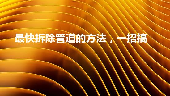 摘要:随着社会的发展,各种新型建筑和设备不断涌现,但同时也出现了拆除难题。由于传统的管道拆除方法不仅费时费力,而且还会在拆除过程中产生污染和危害安全等问题。因此,本文将介绍一种最快拆除管道的方法,一招...