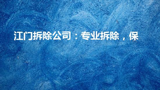 江门拆除公司:专业拆除,保障您的安全和财产!