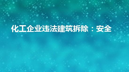 摘要:化工企业违法建筑拆除一事,给周边居民和企业带来重大安全隐患,迫切需要进行拆除工作。本文以安全隐患解除计划为中心,由一位拆除行业专家,从四个方面进行详细专业深入的阐述,包括拆除前清洗置换、设备回收...