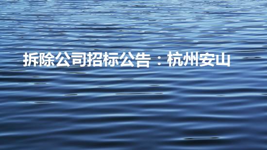 摘要:随着城市的不断发展,拆除行业的需求也在不断增加。本文将以拆除公司招标公告:杭州安山项目招标信息为中心,从拆除行业专家的角度出发,对该项目做详细专业深入的阐述。正文:一、项目概述杭州安山项目是一项...
