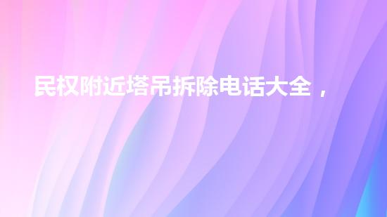 摘要:民权附近塔吊拆除电话大全,最全面的拆除公司联系方式将为需要拆除民权附近塔吊的人提供便利,本文将从拆除行业专家的角度出发,详细阐述民权附近塔吊拆除电话大全,最全面的拆除公司联系方式。介绍:民权附近...