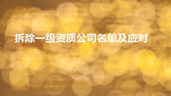 摘要:本文从化工技术专家的角度,讨论了拆除一级资质公司名单及应对策略。文章介绍了拆除行业的背景信息,分析了这些公司拆除的原因和可能的后果,并提出了针对这些问题的有效应对策略。主要阐述了拆除前的准备工作...