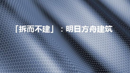 「拆而不建」:明日方舟建筑拆除与可持续发展问题探析