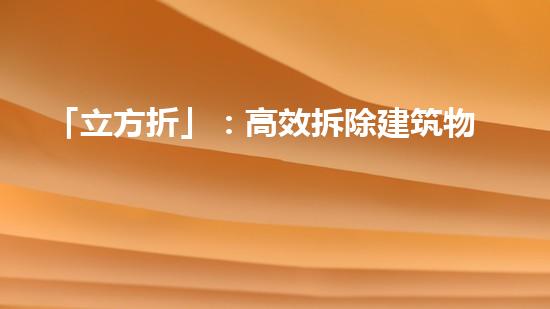 摘要:「立方折」是一种高效的建筑物拆除方法,通过将建筑物拆除后的残骸折合成立方体,便于计算拆除的材料数量和成本。本文将从拆除行业专家的角度,从四个方面详细介绍「立方折」技术的实现方法和应用场景。正文:...