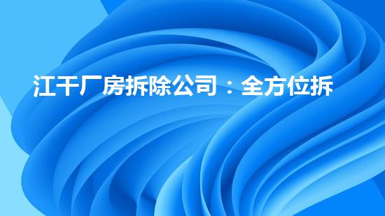 摘要:随着江干厂房的年龄不断增长,它们变得不安全、失效和需要拆除。在这种情况下,江干厂房拆除公司提供了全方位拆除解决方案,它使拆除变得更加安全、高效和环保。本文将从技术、管理、设备和环保四个方面对该公...