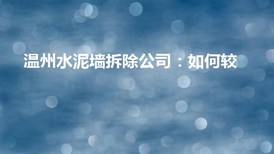 摘要:随着城市化的进程不断推进,建筑物的拆除工作也不可避免地变得越来越频繁。然而,拆除工作所产生的噪音和污染却成为了困扰市民的问题。本文以温州水泥墙拆除公司为例,阐述如何较少噪音污染的方法。正文:一、...