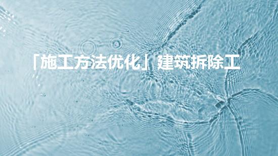 摘要:建筑拆除工作一直是一个高风险工作,其难点在于如何优化施工方法,提高拆除工作的效率和安全性。本文介绍了一种“施工方法优化”建筑拆除工作的方法,通过对拆除工作中的关键点进行细致的分析和探讨,得出了一...
