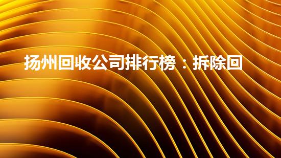 摘要:随着社会经济的不断发展,回收行业也日益壮大,其中拆除回收专家的地位得到进一步的提升。本文基于扬州回收公司排行榜,介绍了其中的前三名公司,为读者提供了专业的深入阐述。正文:一、公司介绍1、A公司A...