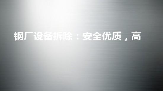钢厂设备拆除:安全优质,高效低成本