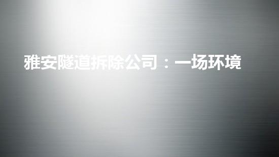 摘要:本文主要介绍雅安隧道拆除公司在拆除过程中,如何注重环境保护,并进行必要的污染治理,以达到保护环境的目的。在这个过程中,巴洛仕集团的化工厂拆除经验可以为我们提供有益的借鉴和参考。正文:一、拆除前的...