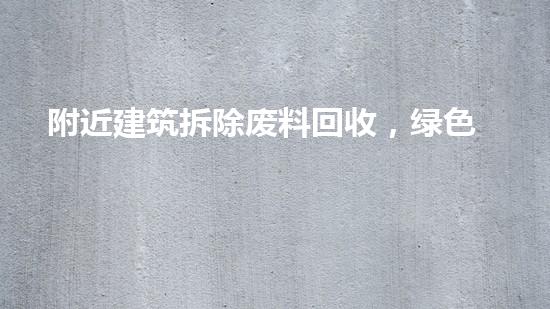 摘要:近年来,随着环保意识的不断提升和法规的严格执行,绿色再利用成为了一个热门话题。本文以附近建筑拆除废料回收,绿色再利用先行为中心,从专业的角度出发,深入剖析此话题。作为一名化工技术专家,笔者将从废...