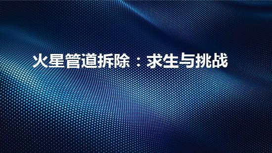 摘要:火星管道拆除是一项极具挑战性的任务,需要面对着种种困难和风险。但在科学家们的不断努力下,火星管道拆除终于完成。本文将以火星管道拆除为主题,探讨其中的求生与挑战,并为读者提供相关背景信息。正文:一...