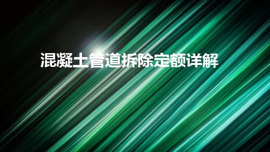 摘要:随着各种基础设施的建设和改造,混凝土管道的使用范围越来越广,而混凝土管道的拆除也成为了一个必要的环节。混凝土管道拆除定额的制定和实施对于工程的顺利进行至关重要。本文就混凝土管道拆除定额进行详细的...