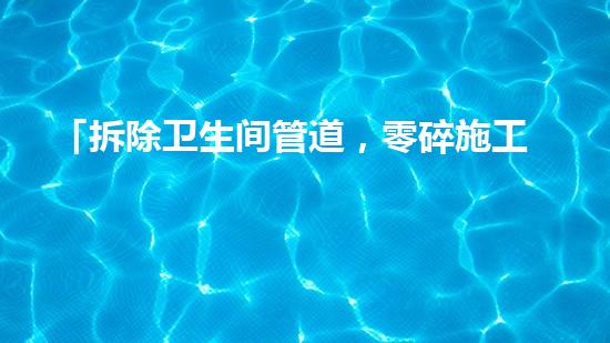 摘要:本篇文章将介绍拆除卫生间管道的零碎施工技巧,这是一个需要耐心和技巧的过程。通过本文的阅读和学习,读者们将学习到如何正确且安全地拆除卫生间管道。卫生间装修是家居装修中最重要也最繁琐的一部分。在拆除...