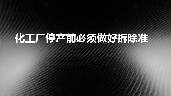 摘要:化工厂在停产前必须做好拆除准备工作,以确保拆除过程的安全和顺利进行。该文章通过介绍化工厂拆除准备工作的重要性和需要注意的事项,旨在引起读者的兴趣并提供帮助。正文:化工厂拆除准备工作的重要性在化工...