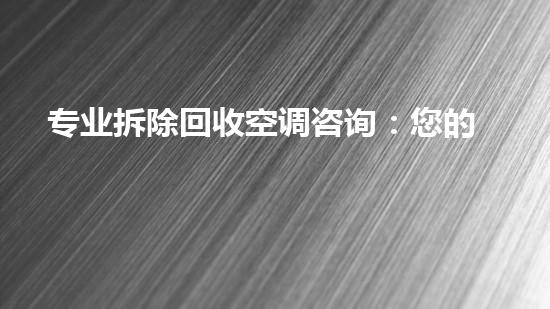 专业拆除回收空调咨询:您的环保选择与投资当夏日炎炎或寒冬凛冽,空调已成为生活中不可或缺的舒适保障。然而,当设备老化、需要更换或是办公室搬迁、房屋装修时,如何处理那台庞大的旧,却成了许多人的难题。随意丢...
