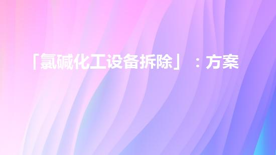 氯碱化工设备拆除是化工行业中一个非常重要的环节。如何安全、快速、高效地进行氯碱化工设备拆除,成为了行业内的焦点。本文将重点介绍氯碱化工设备拆除的方案和案例,通过现场经验的分享,为读者提供参考和支持