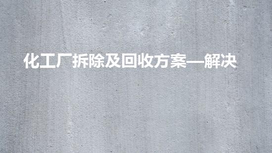 化工厂的拆除和回收方案是旧工业基地环境风险问题的解决方案,该方案涉及到多个方面。本文将从不同的角度来探讨化工厂拆除及回收方案,包括规划管理、拆除技术、危废处理、设备回收和土壤修复等方面。同时,本文将介绍巴洛仕集团的一站式解决方案和化工不动火拆除技术。
