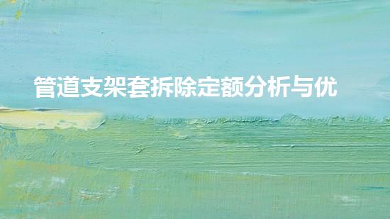 管道支架套是建筑、工业生产中必不可少的零部件,而其拆除工作也十分重要。本文从分析管道支架套拆除定额入手,对其进行了优化研究,旨在提供更加高效准确的拆除方案。文章主要包含四个部分:背景介绍、定额分析、优化研究和结论。