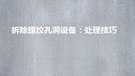 拆除螺纹孔洞设备是一项重要的技术工作,它需要一定的技巧和步骤才能完成。本文将从多个方面介绍拆除螺纹孔洞设备的处理技巧和步骤,旨在为读者提供深入详细和专业的分析介绍。